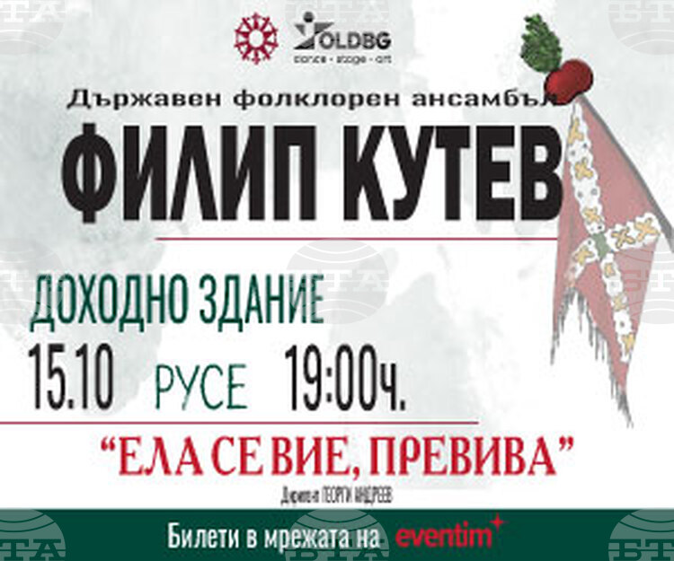 Национален фолклорен ансамбъл „Филип Кутев“ ще представи в Русе спектакъла си „Ела се вие, превива“. Това съобщи за БТА продуцентът на концертите на ансамбъла Николай Божков, като уточни, че представлението започва в 19:00 часа тази вечер в Доходното здание в крайдунавския град.