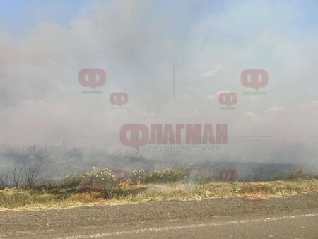 Пожар на входа на Карнобат, горят ниви (СНИМКИ)