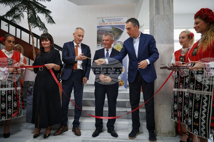 Специално за откриването в Бургас пристигна министърът на образованието, младежта и науката Красимир Вълчев. Той заедно с кмета на Бургас Димитър Николов, настоящия ректор на държавен университет „Проф. д-р Асен Златаров“, директора на Колежа доц. д-р Веселина Атанасова прерязаха лентата на обновената сграда.