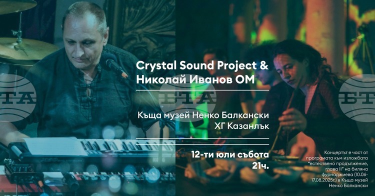 Концерт на Crystal Sound Project, представени от музикалния лейбъл Enovae records и Николай Иванов- Ом, ще се състои на 12 юли в къща музей „Ненко Балкански“ в Казанлък. Това съобщават в официалната си фейсбук страница организаторите от местната Художествена галерия. Концертът е продължение на изложбата „Естествено продължение, глава II“ на Биляна Фурнаджиева, която може да бъде разгледана до 17 август.