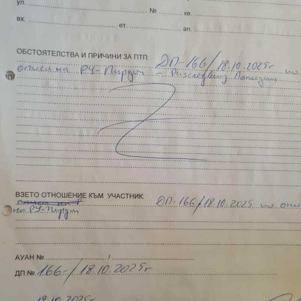 Пред Вас, е така чаканият протокол за ПТП по смисъла на ЗМВР и ЗДвП, който е неизменна част от действията на полицейските служители при обработване на произшествия на пътя. Листя от протокола, с които доказваме, че тримата служители на РПУ – Пирдоп, са бездейзтвали в онази нощ. В услуга на убиеца на Мартин Димитров.